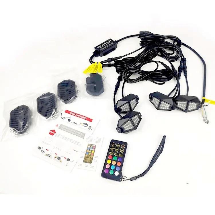 Upgrade your off-road vehicle with the Lawless Chasing Color LED Rock Light Kit — built for maximum brightness, wide coverage, and ultimate style. With a 210° wide emitting angle and 18 super-bright LED chips per pod, this kit lights up the ground like no other. Perfect for Jeeps, trucks, UTVs, and SxS builds, it’s the ultimate upgrade for night rides, trail runs, or show setups.