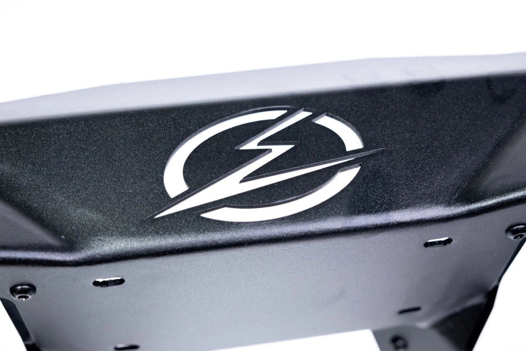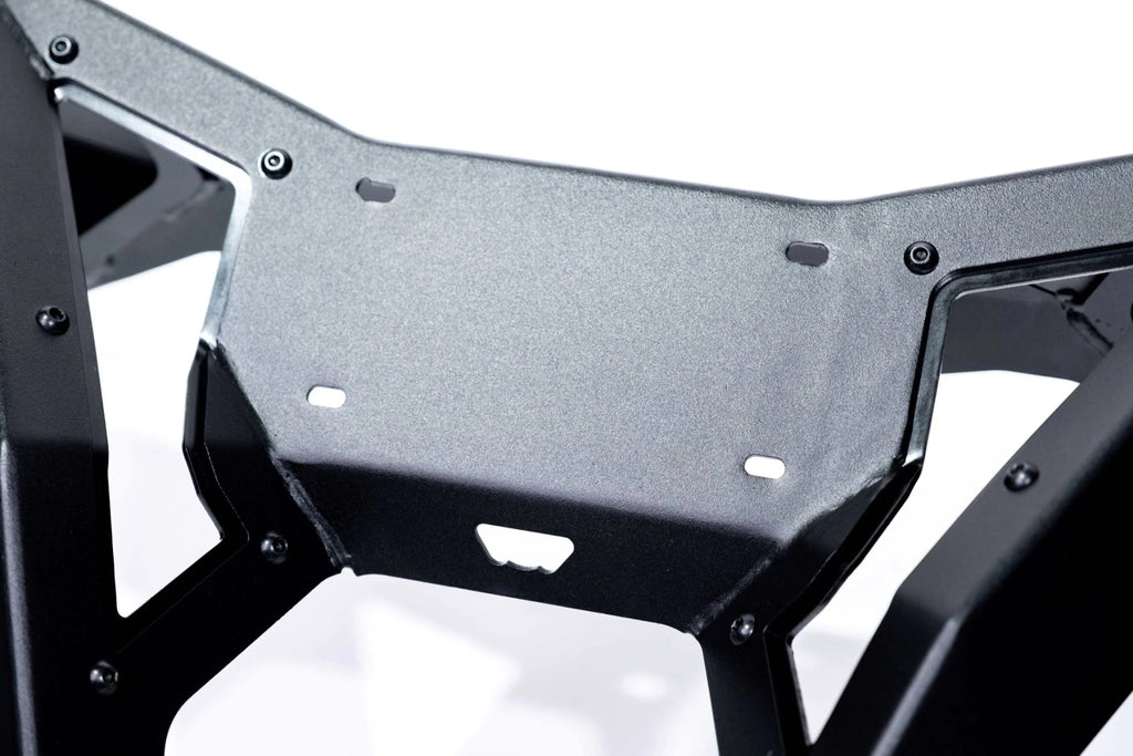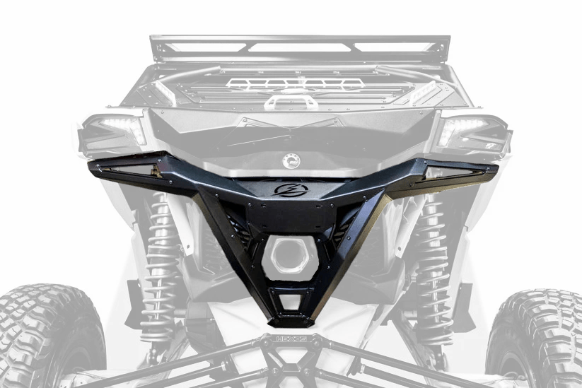 This Can-Am 2017+ X3 Volt Rear Bumper is powder-coated with durable, hammer black paint and satin accent plates. Its sleek design includes mounting holes for your license plate for a direct-fit, with some models possibly requiring additional drilling.